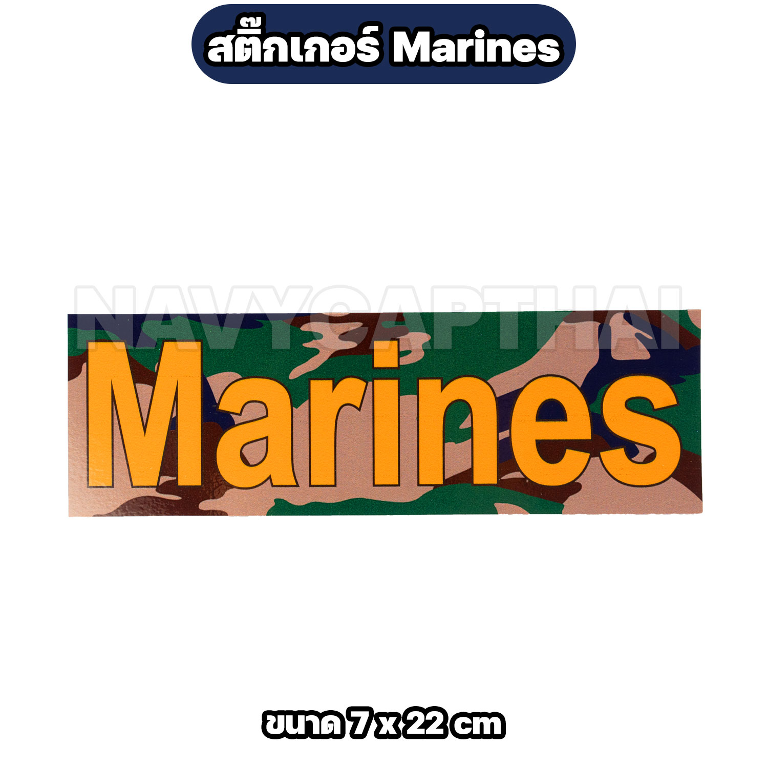สติ๊กเกอร์ลาย “Marines / นาวิกโยธิน” ดีไซน์ลายพรางทหาร ตัวอักษรสีเหลืองทองโดดเด่น มองเห็นชัด เหมาะสำหรับสายทหาร หรือผู้ที่ชื่นชอบสไตล์ Tactical