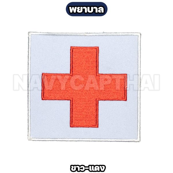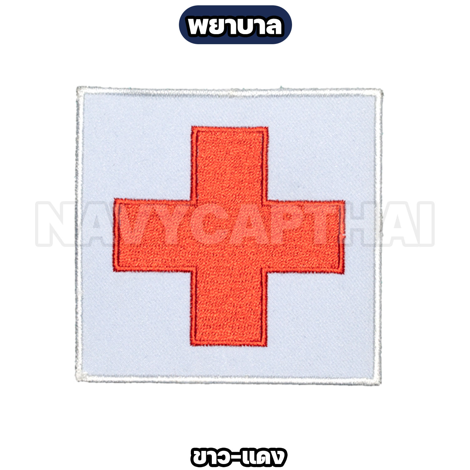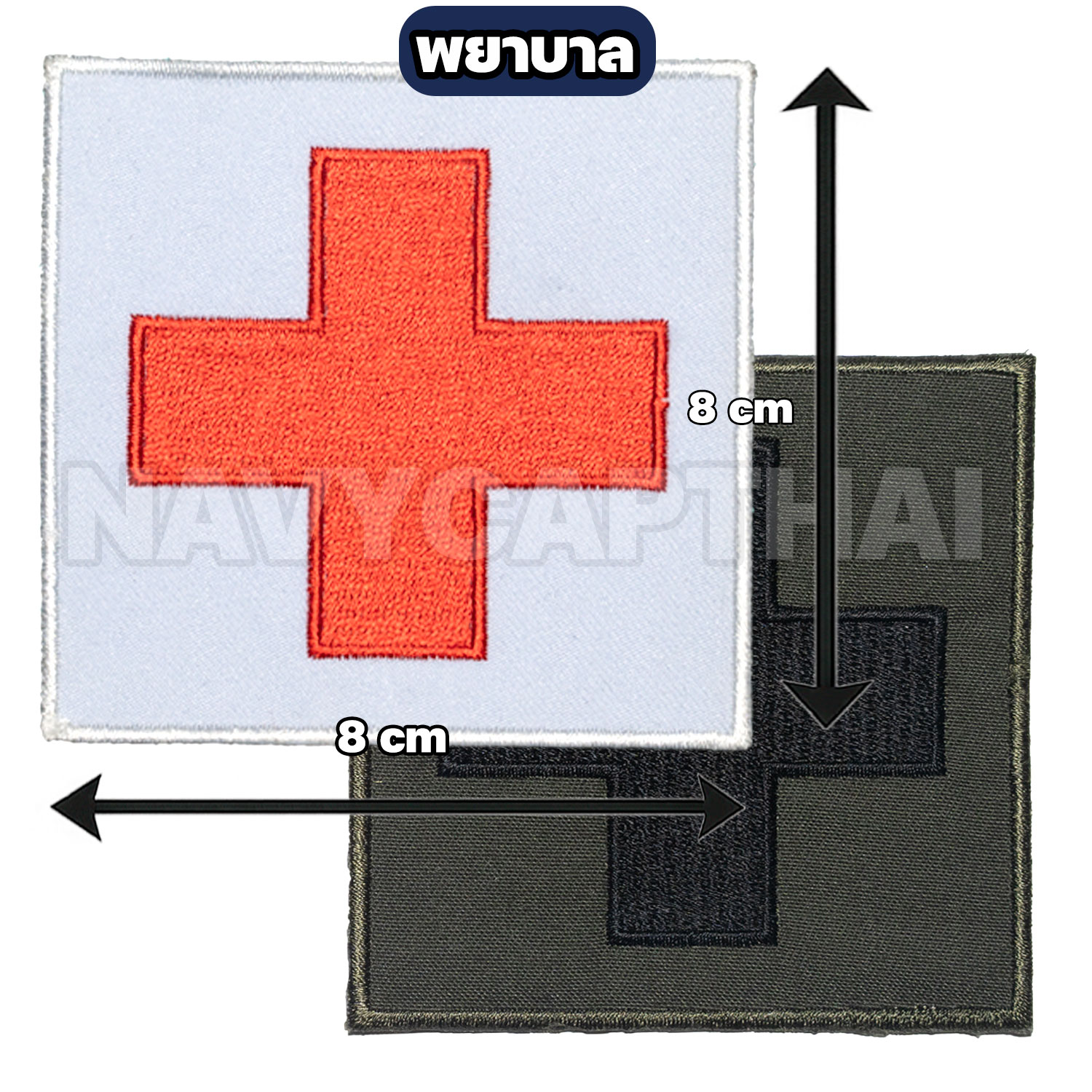 อาร์มเครื่องหมายพยาบาล กาชาด ปักผ้าคุณภาพดี ใช้สำหรับติดเสื้อ ชุดฝึก หรืออุปกรณ์ยุทธวิธี เพื่อแสดงตำแหน่งเจ้าหน้าที่พยาบาลหรือผู้ปฏิบัติหน้าที่ด้านการแพทย์