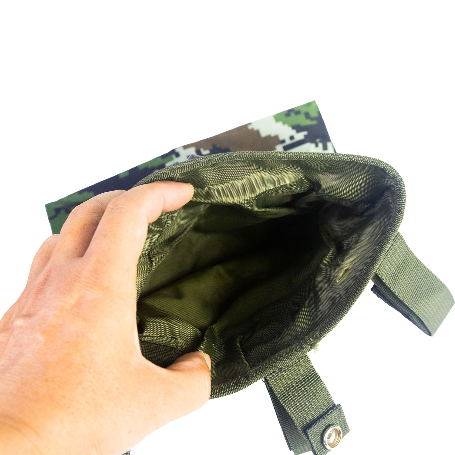 ถุงทิ้งแม็ก ขนาด 20 x 25 ซม. ผลิตจากผ้าโพลีเอสเตอร์เนื้อหนา แข็งแรง ทนทาน มาพร้อมหูหิ้วและห่วงร้อยสำหรับติดกับเข็มขัดหรืออุปกรณ์ยุทธวิธี ปากถุงมีเชือกรูดปรับกระชับ ป้องกันแม็กกาซีนหล่นหายหรือสิ่งของกระเด็นออก ใช้งานง่าย พับเก็บได้สะดวก เหมาะสำหรับทหาร ตำรวจ รด. นักกีฬา IPSC ยิงปืน รวมถึงผู้ที่ทำกิจกรรม Tactical และ Outdoor