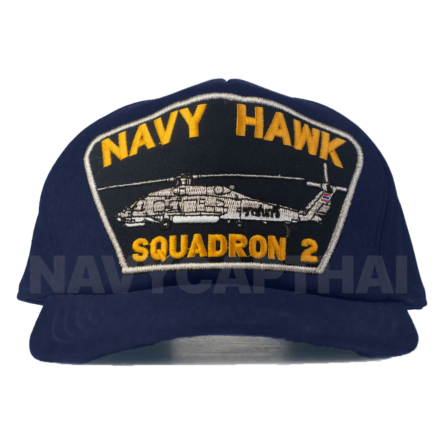 หมวกแก๊ป NAVY HAWK Squadron 2 ดีไซน์สไตล์กองทัพเรือ โดดเด่นด้วยงานปักลาย NAVY HAWK พร้อมเฮลิคอปเตอร์ และข้อความ Squadron 2 ให้ความรู้สึกเท่ แข็งแรง และดูเป็นเอกลักษณ์ของสายการบินทหาร