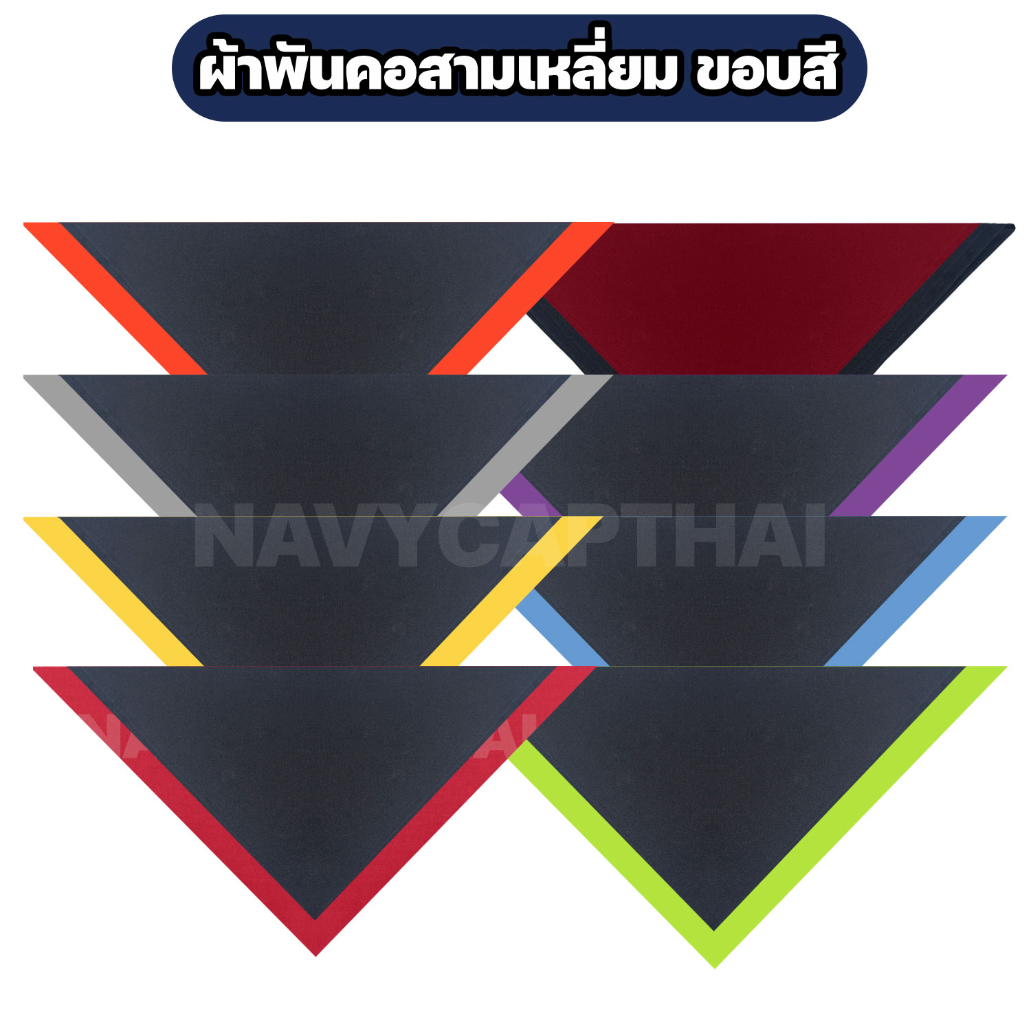 ผ้าพันคอสามเหลี่ยมขอบสี (ผ้าสามเหลี่ยมขลิบขอบ) สำหรับทหาร ตำรวจ ผลิตจากผ้าคุณภาพดี เย็บขลิบขอบอย่างประณีต ทนทานต่อการใช้งาน