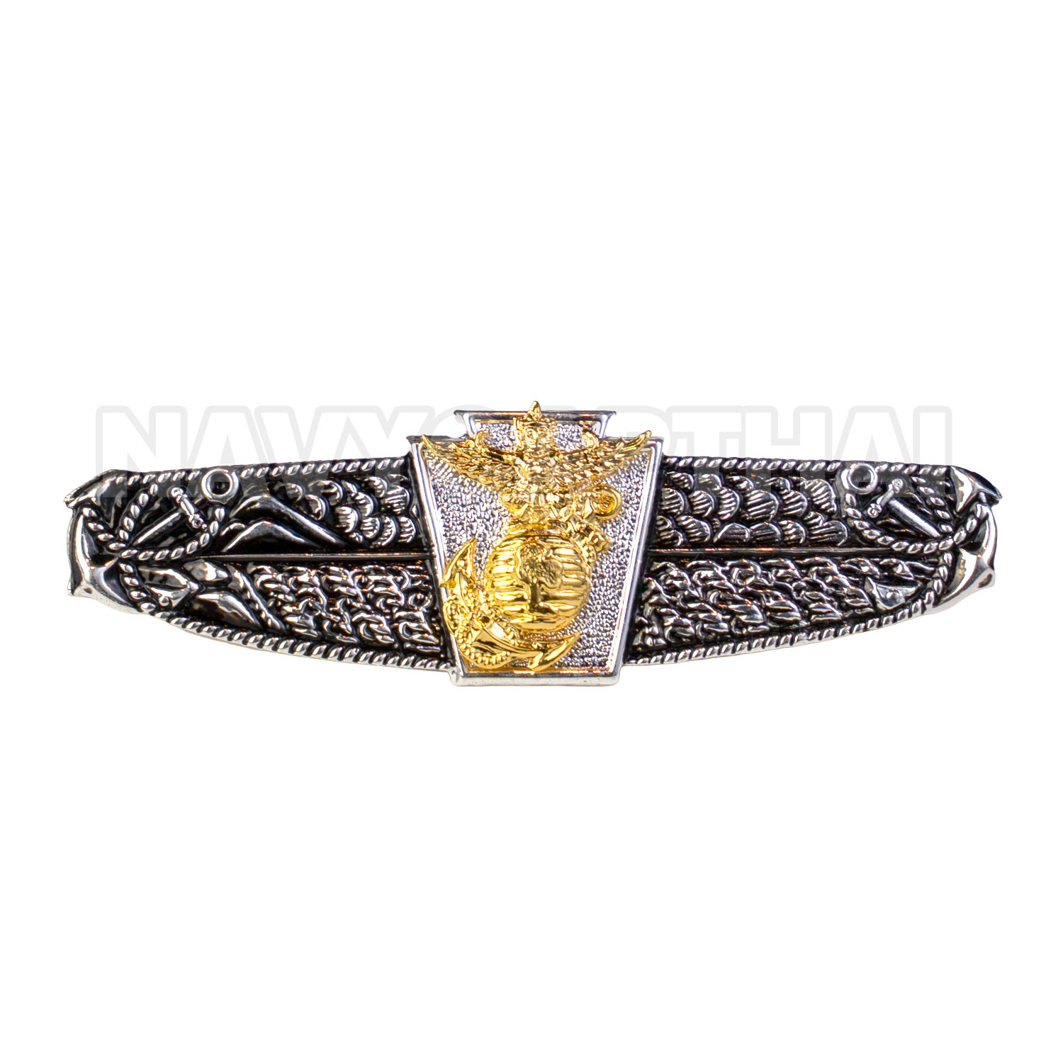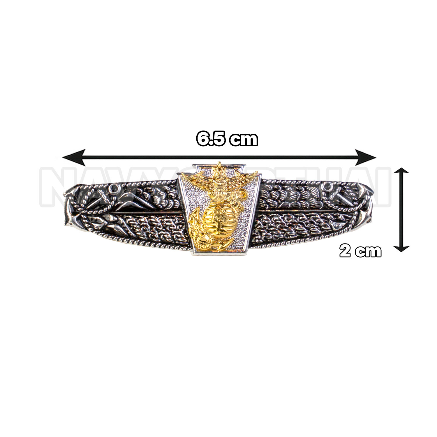 เข็มเครื่องหมายรบพิเศษ RECON ของกองทัพเรือไทย ดีไซน์โดดเด่น ลวดลายคมชัด งานโลหะคุณภาพสูง โทนสีเงิน-ทอง ดูแข็งแกร่งและมีเอกลักษณ์ เหมาะสำหรับติดเครื่องแบบ หรือสะสม