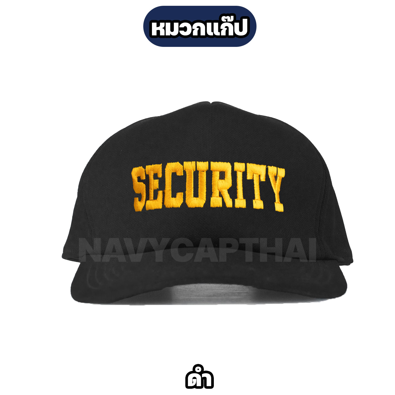 หมวกแก๊ป SECURITY สำหรับเจ้าหน้าที่รักษาความปลอดภัย งานป้องกันภัย และงานพื้นที่ต่าง ๆ ปักอักษร SECURITY สีเหลืองเข้มแบบ 3 มิติ ชัดเจน เพิ่มความน่าเชื่อถือในการปฏิบัติงาน