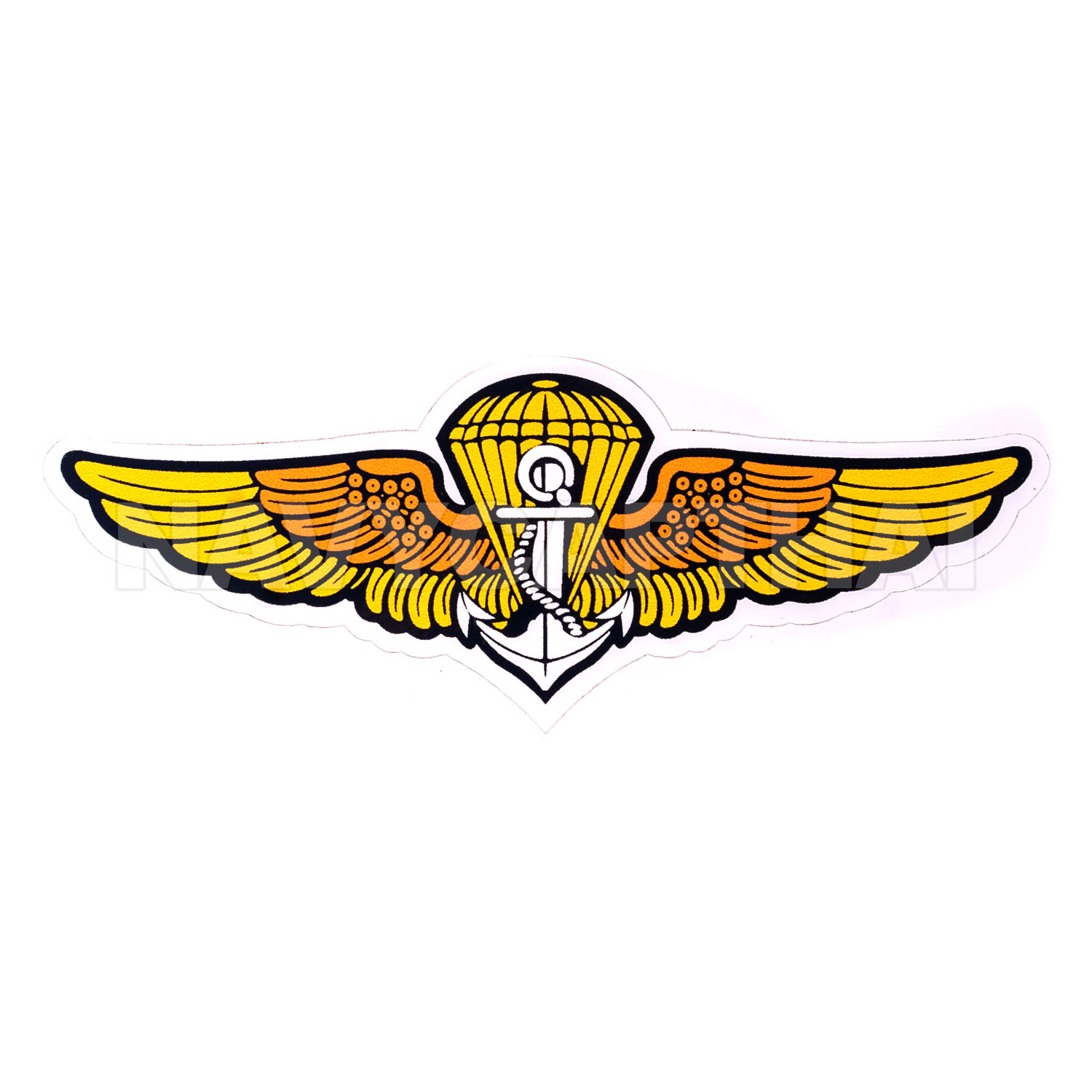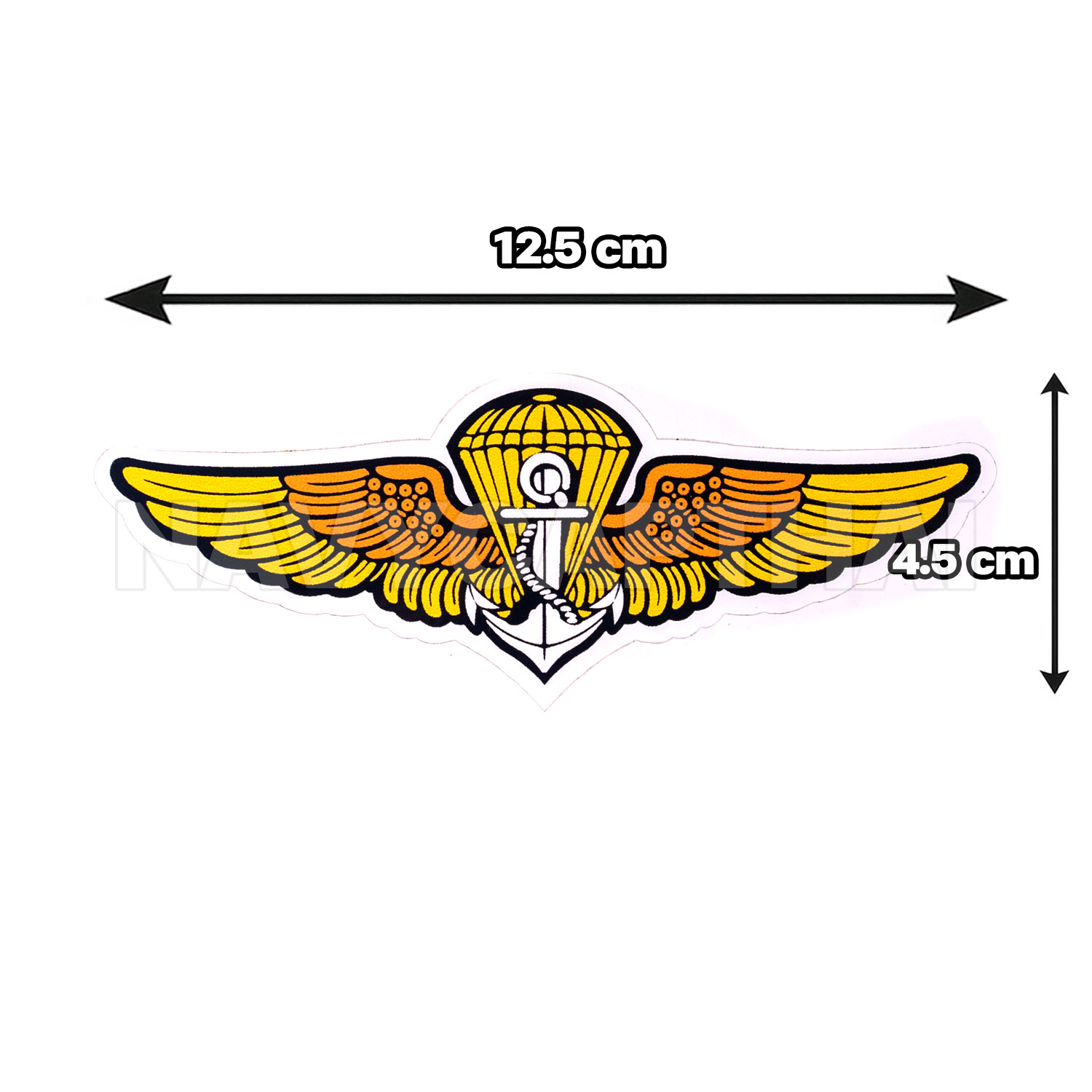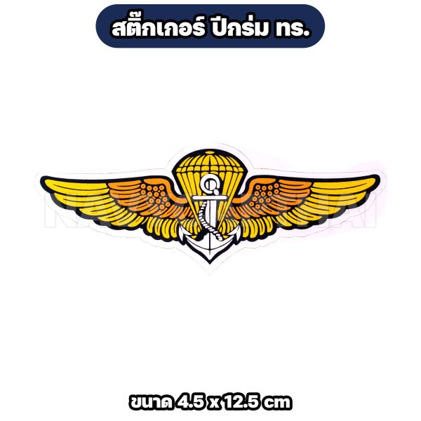 สติ๊กเกอร์ลาย ปีกร่ม ทร. (กองทัพเรือ) ดีไซน์คมชัด สีทองโดดเด่น สื่อถึงความภาคภูมิใจของหน่วย เหมาะสำหรับสายทหาร หรือผู้ที่ชื่นชอบสไตล์ทหาร