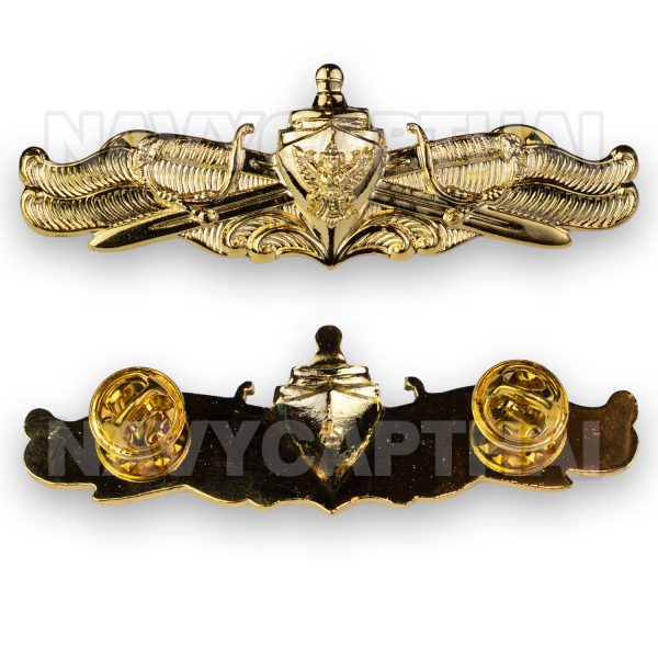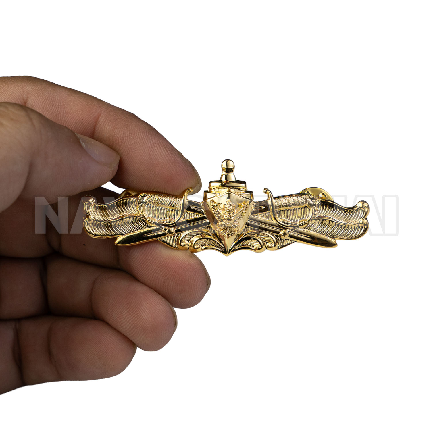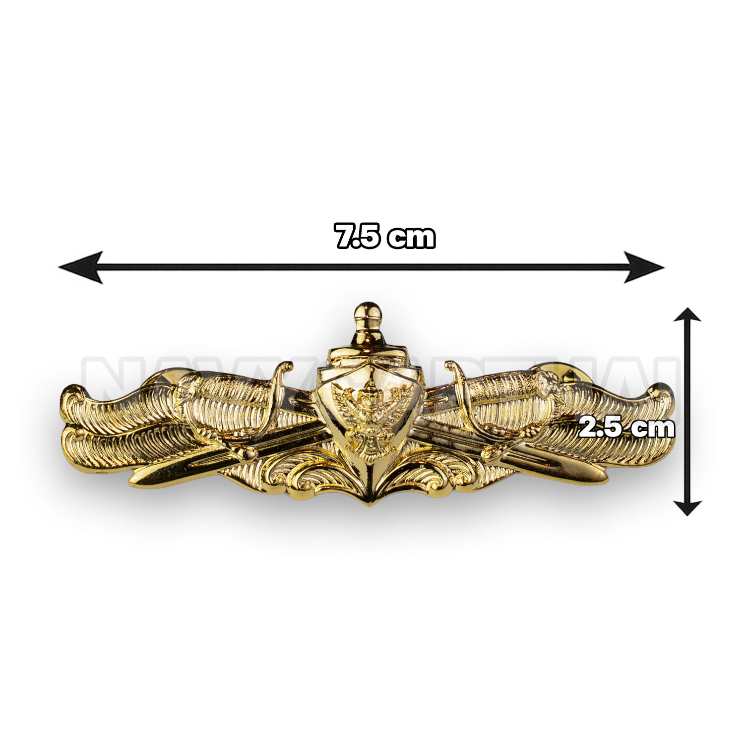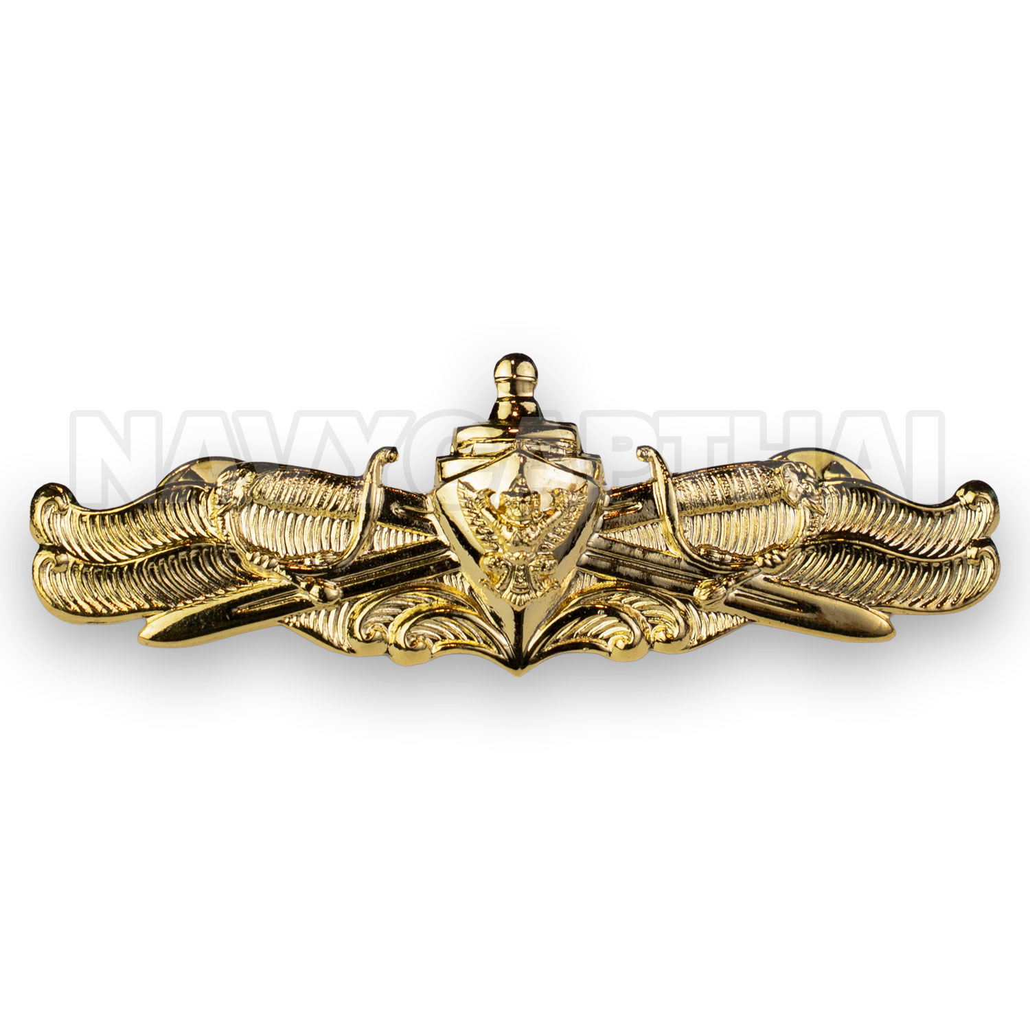 เครื่องหมายแสดงความสามารถสงครามเรือผิวน้ำ (Surface Warfare) สำหรับติดเครื่องแบบกองทัพเรือ ผลิตจากโลหะชุบสีทอง ดีไซน์สวย รายละเอียดคมชัด ให้ลุคทางการและสมจริง เหมาะสำหรับผู้ใช้งานจริงและสายสะสม