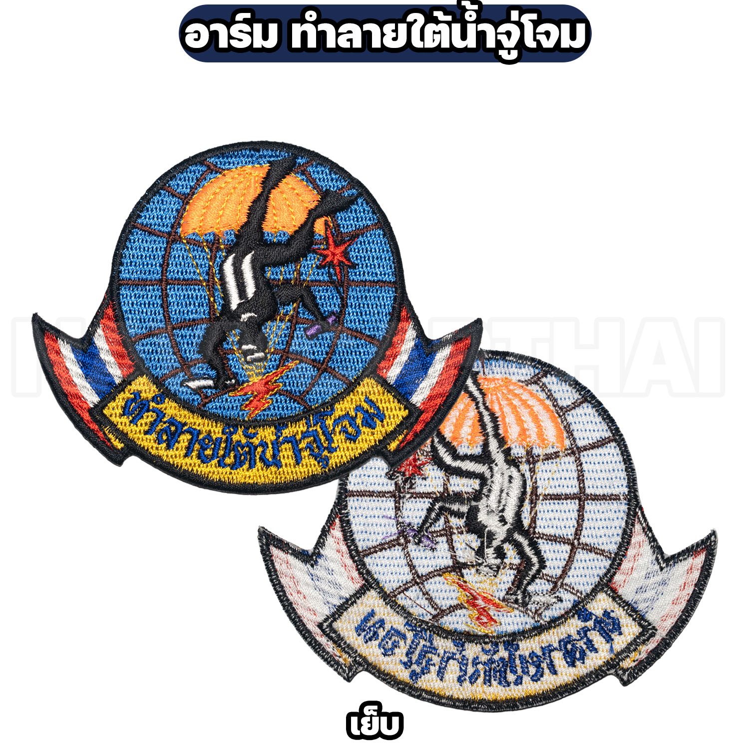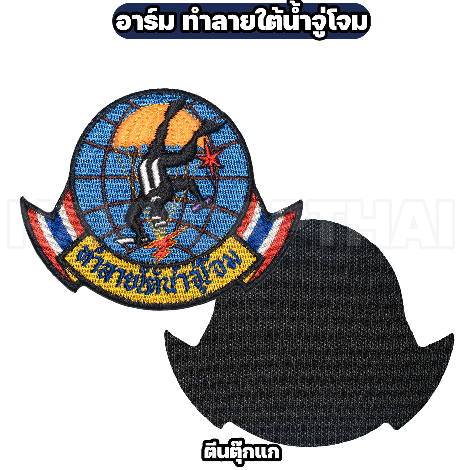 อาร์มผ้าปัก “ชุดทำลายใต้น้ำจู่โจม” โทนสีเต็ม สวยคม รายละเอียดแน่น เหมาะสำหรับสะสม ติดกระเป๋าเป้สนาม เสื้อแจ็คเก็ต หรือชุดฝึก